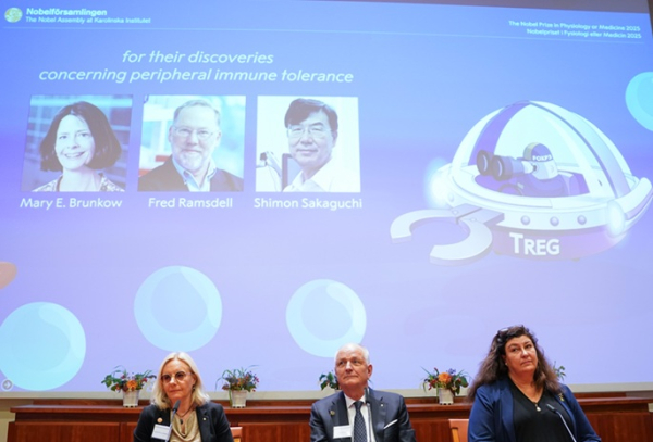 Mary E. Brunkow, Fred Ramsdell, and Shimon Sakaguchi were awarded the 2025 Nobel Prize in Physiology or Medicine on Monday for their discoveries concerning peripheral immune tolerance, said the Nobel Committee in a press release.